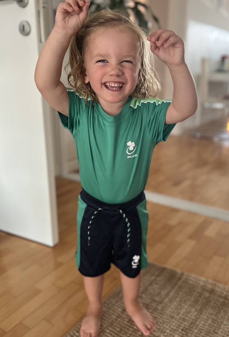 Today was the first day of Ireland's Rugby World Cup campaign, so we got the whole family dressed up in green. Nora has a new tiny kit, and it's adorable.