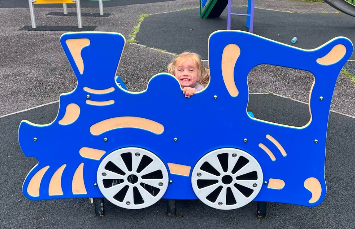 ๐ Clรณs Sugratha Maigh Chromtha (Macroom) - top of a very steep hill (both hands on the stroller), but great set up and a double decker playground.